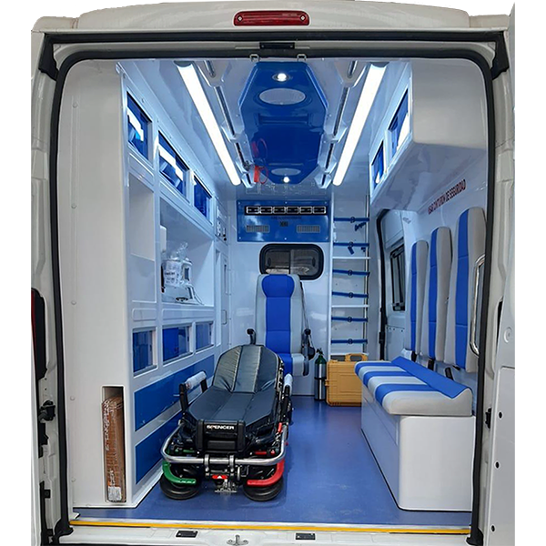 Cuenta con un espacio para alojar un (01) paciente en camilla, tres (03) personal de asistencia sentados, más un asiento Médico asistente con la suficiente libertad para realizar maniobras que se requieren para la atención del paciente.