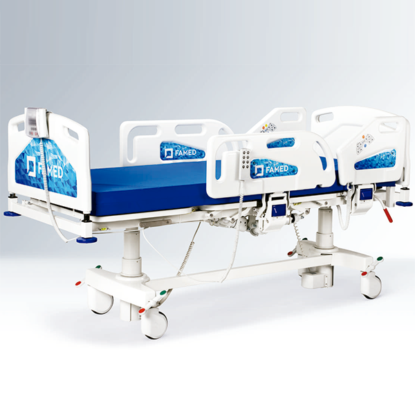 Cama de hospital eléctrica, con funciones avanzadas que permiten utilizar esta cama en unidades de cuidados intensivos.